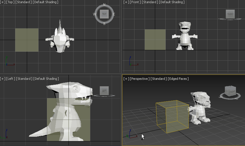 Omdat je beeldscherm plat is kan het lastig zijn om een 3D object te maken. Daarom wordt er gebruiktgemaakt van verschillende aanzichten. Meestal zijn dit het vooraanzicht, zijaanzicht, bovenaanzicht en een perspectiefaanzicht. Om het allemaal nog wat gemakkelijker te maken, kan je met je muis om het object heen draaien. Op deze manier kan je verschillende objecten maken voor je scene.