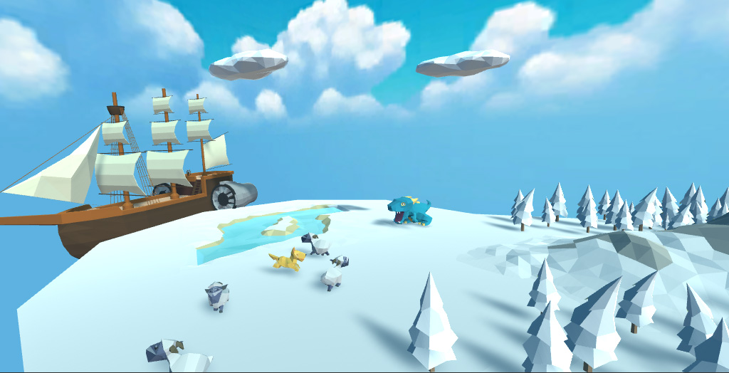 Bij Idle Hands maken we gebruik van 3Ds max en Blender. Deze 2 programma’s kunnen we naast elkaar gebruiken, omdat het eindproduct wordt samengesteld in Unity en de programma’s het naar een universeel format kunnen exporteren (FBX). Op dit moment zijn we bezig met een Mixed Reality mobile game en maken we gebruik van 3D objecten. We hebben al verschillende objecten gemaakt zoals, eilanden, dieren, omgevingen en we hebben deze samengevoegd tot een geheel. Hieronder zie je hier een voorbeeld van.
