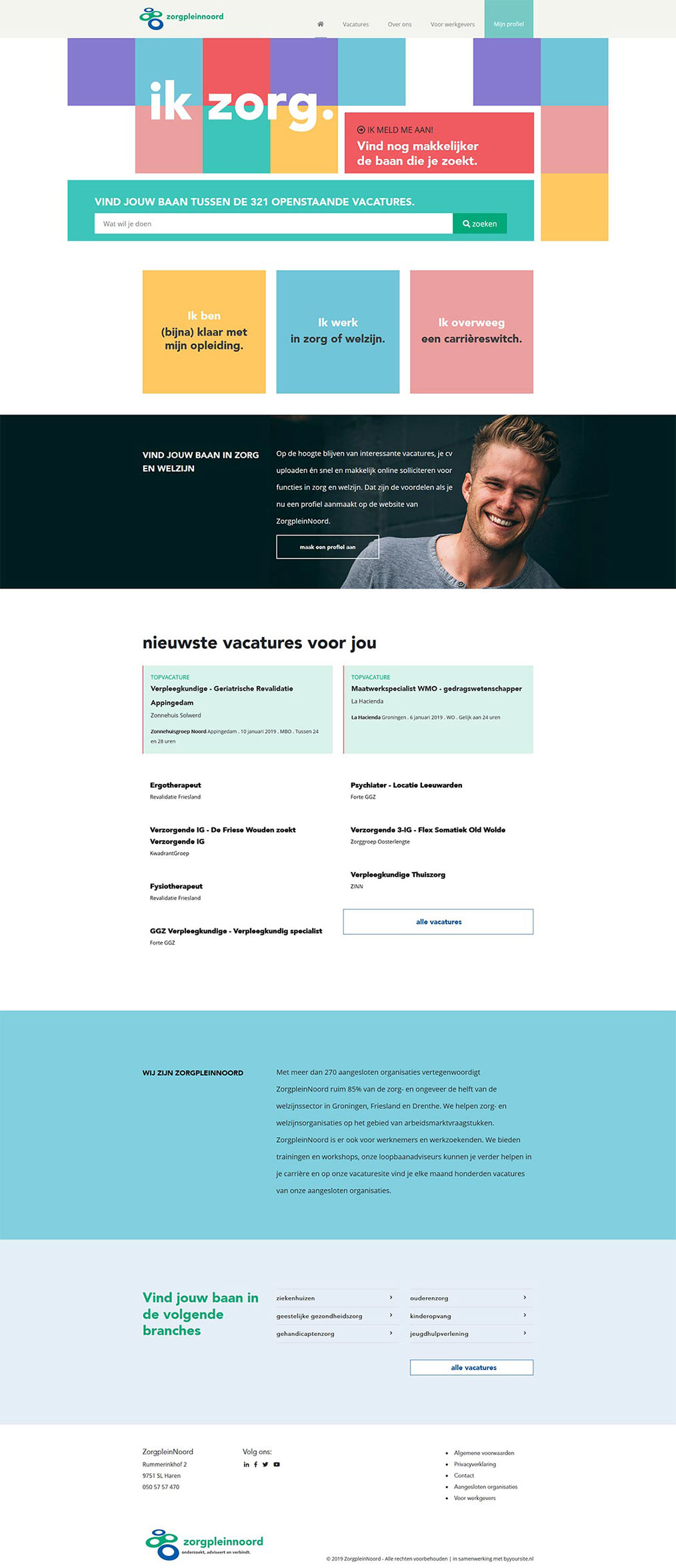Door toedoen van de arbeidstekorten in de zorg heeft de overheid de landelijke campagne ‘Ontdek de zorg’ gelanceerd. De nieuwe recruitment website is ontworpen in de stijl van de landelijke campagne ‘Ontdek de zorg’, zodat actief en latent werkzoekenden in een herkenbare omgeving loopbaanadvies of een nieuwe baan vinden.
