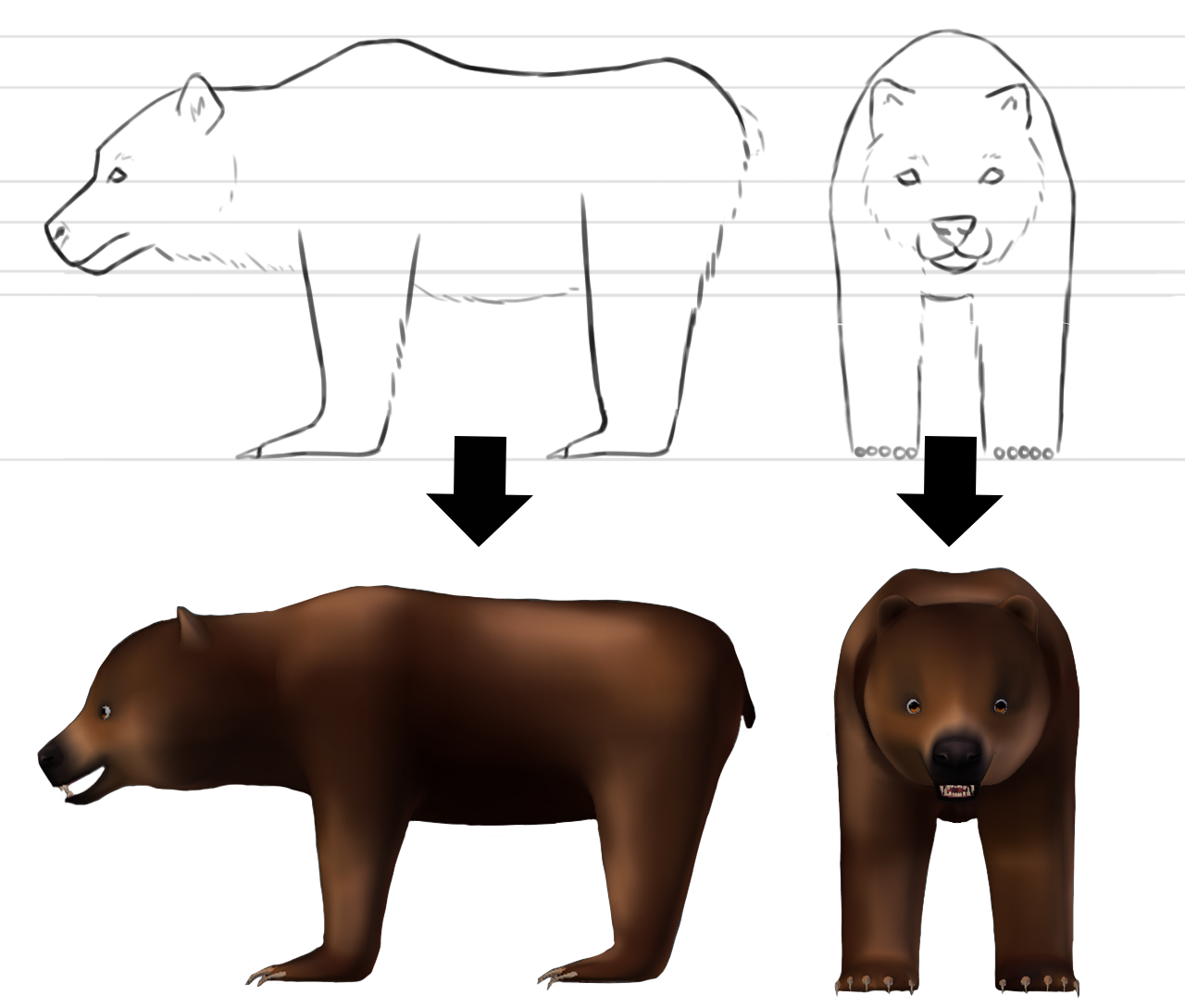 We beginnen bij het begin en dat is natuurlijk een idee bedenken. Mijn idee was om als character een beer te maken. Ik wilde deze redelijk simpel houden en niet al te realistisch maken. Ik heb hiervoor een modelsheet gemaakt en daarna ben ik gelijk bezig gegaan met modellen.